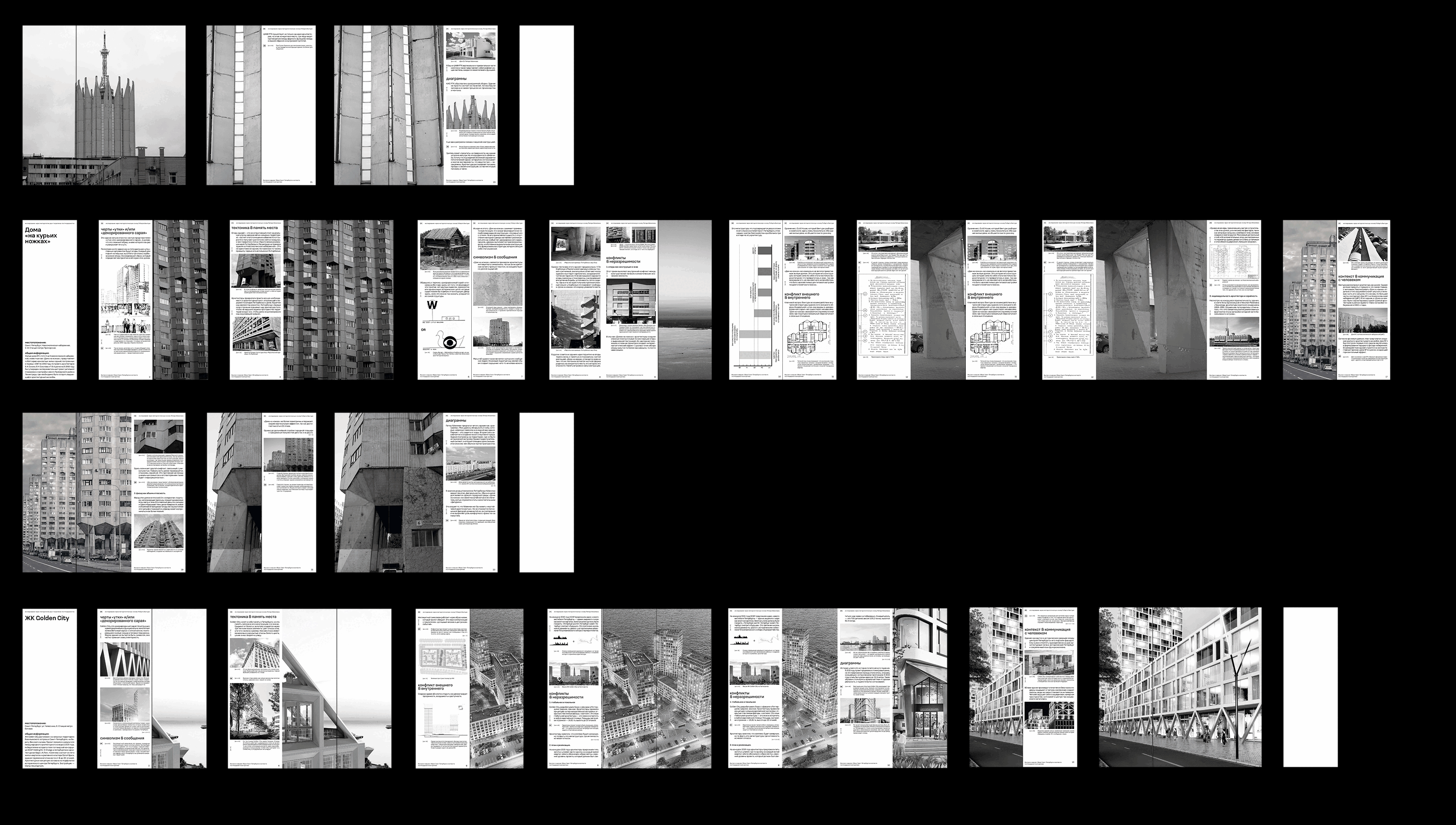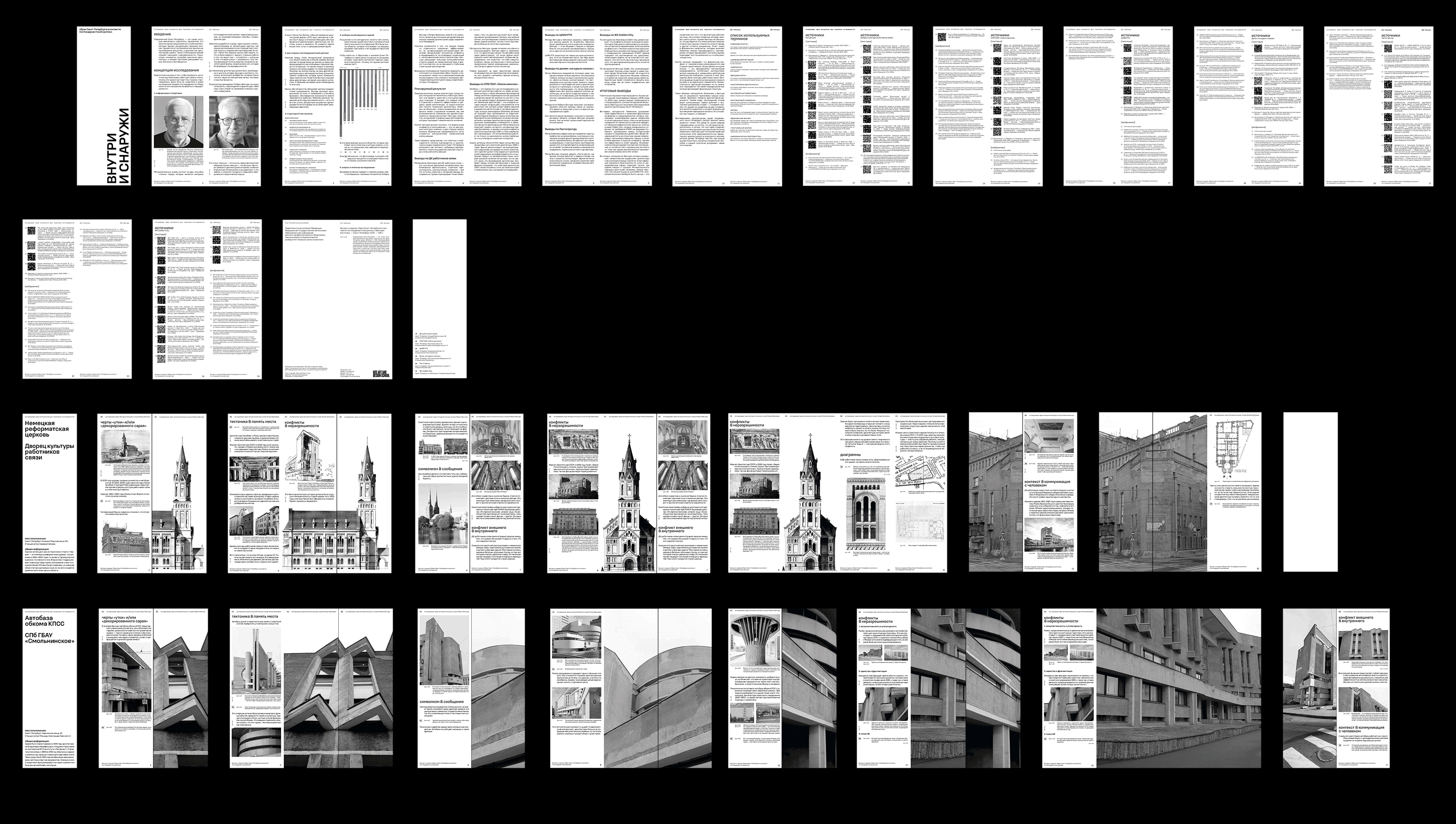 Исследование рассматривает два противоположных метода анализа архитектуры, которые проверяют странности и противоречия зданий, даже если их создатели и вовсе не следовали теориям постмодернистов. Я ищу в них внутренние конфликты и «неразрешимости».