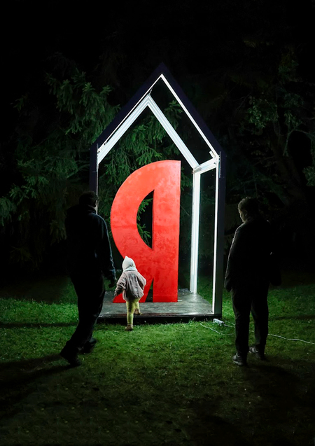 «Я» в домике — светящийся арт-объект, вдохновлённый правилом из «Догонялок». Когда игрок складывает ладони над головой и говорит: «Я в домике!», он временно выходит из игры. Этот жест становится метафорой защиты — в игре и в жизни, когда нам нужно укрыться от трудностей. Объект визуализирует этот момент, предлагая зрителям физически ощутить состояние безопасного «домика».