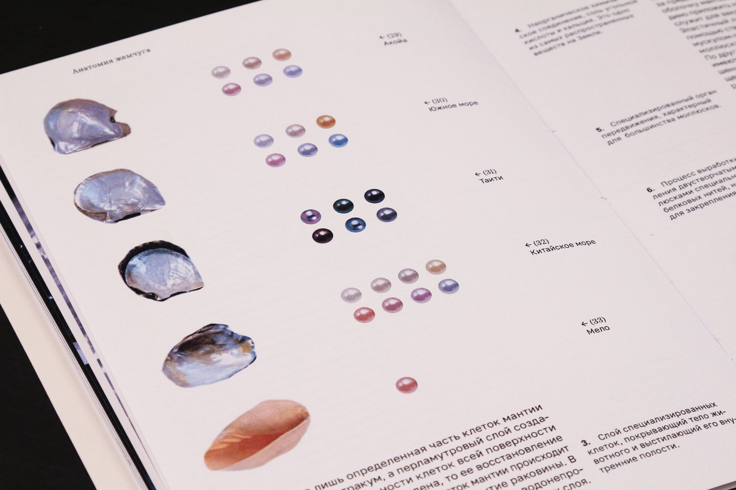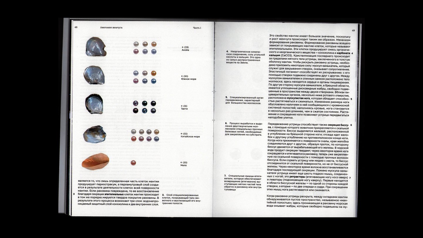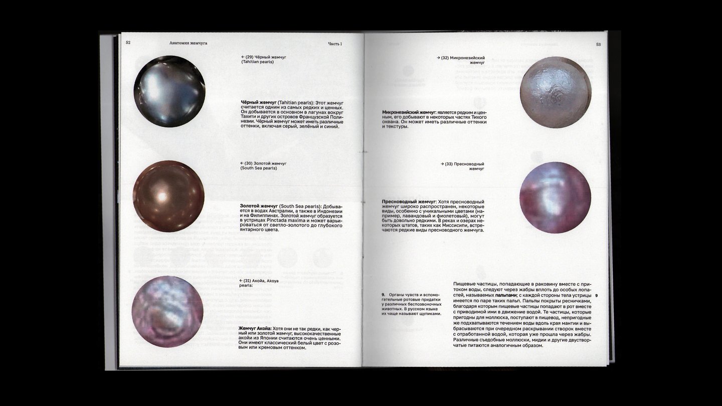 Глава, посвящённая анатомии жемчуга, особенностях его формирования и стоимости разных видов