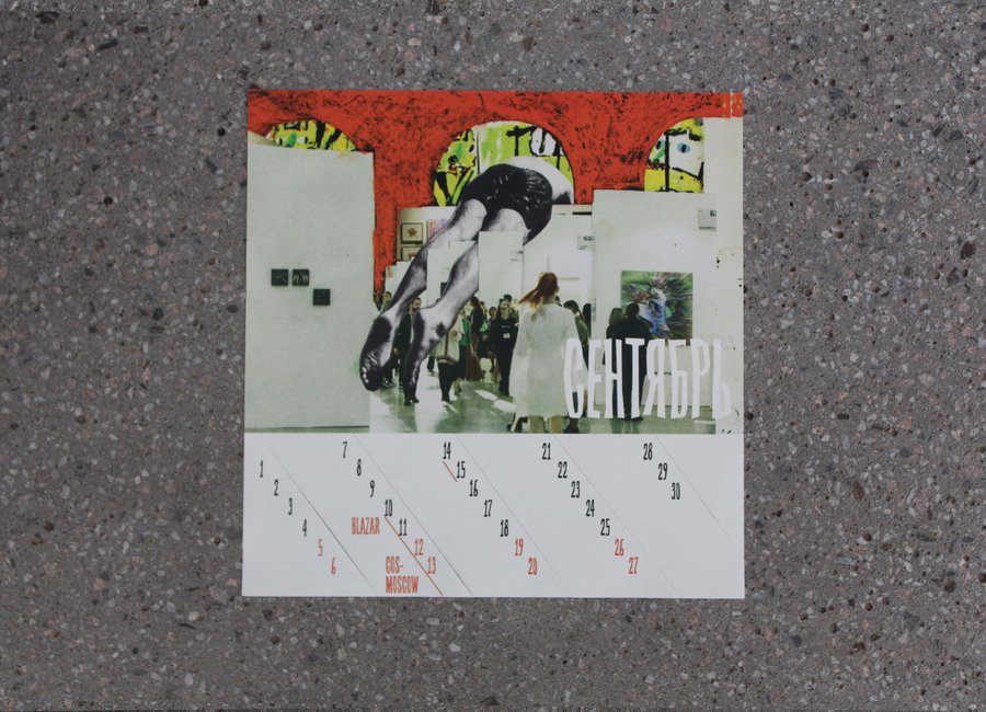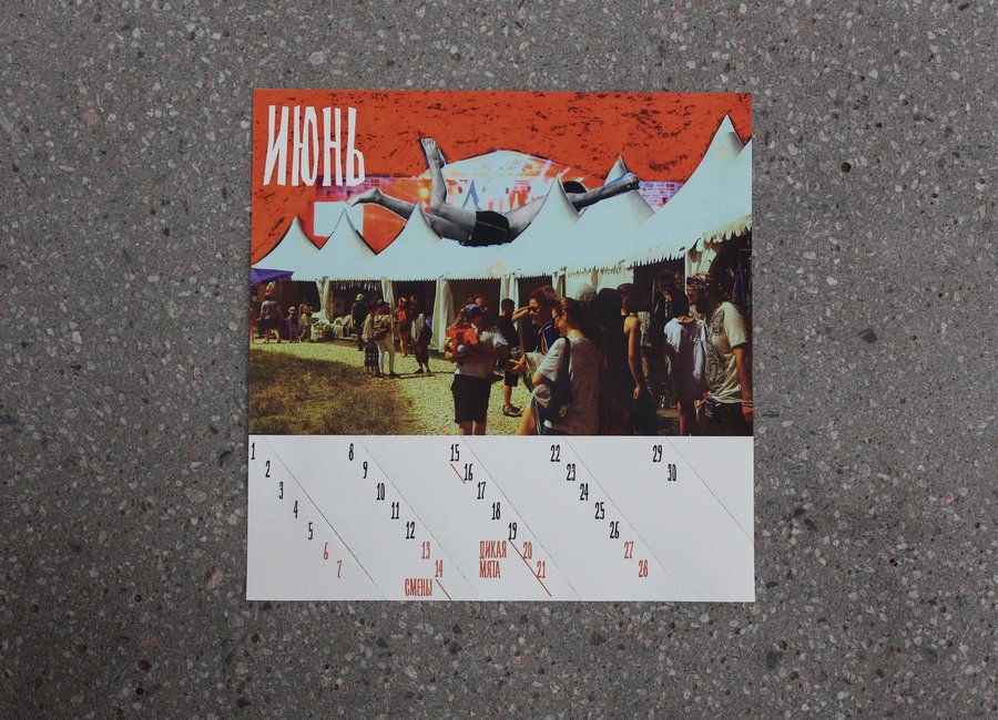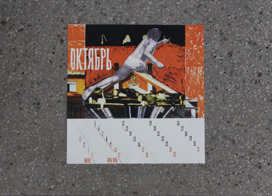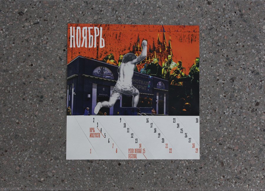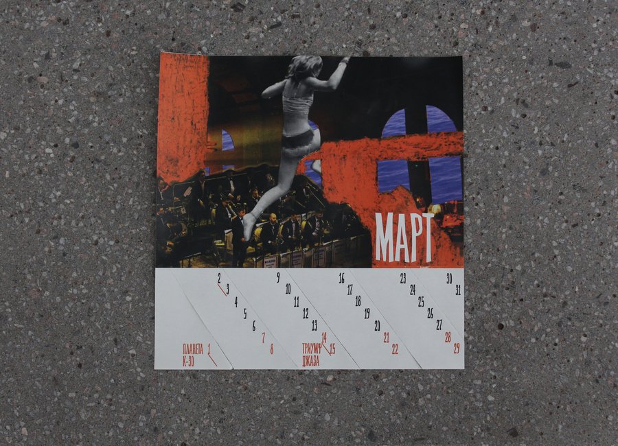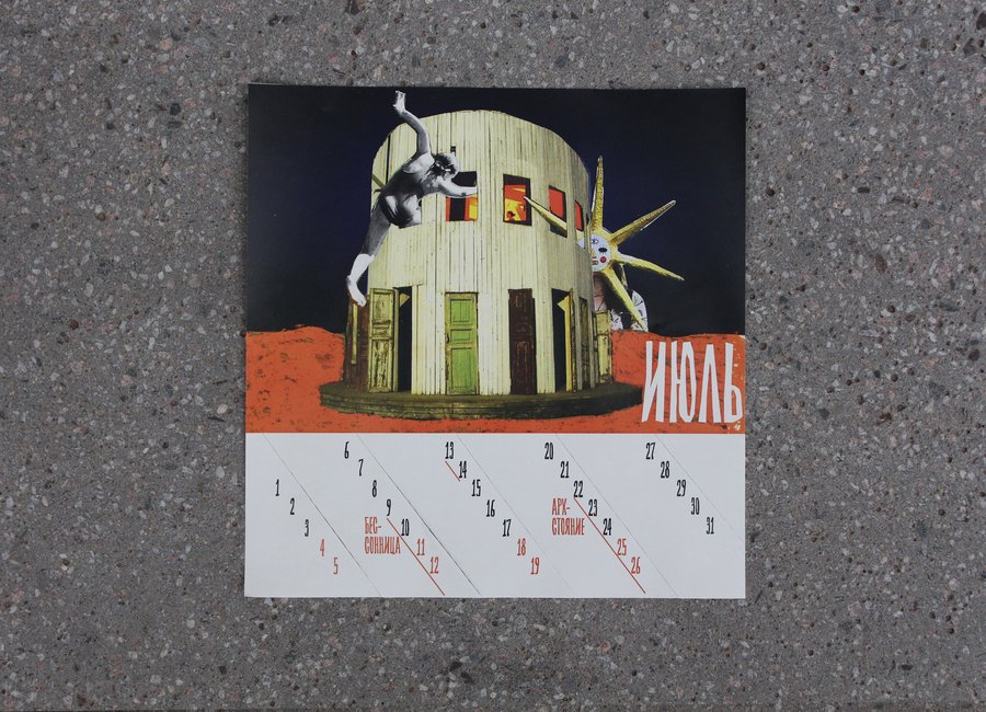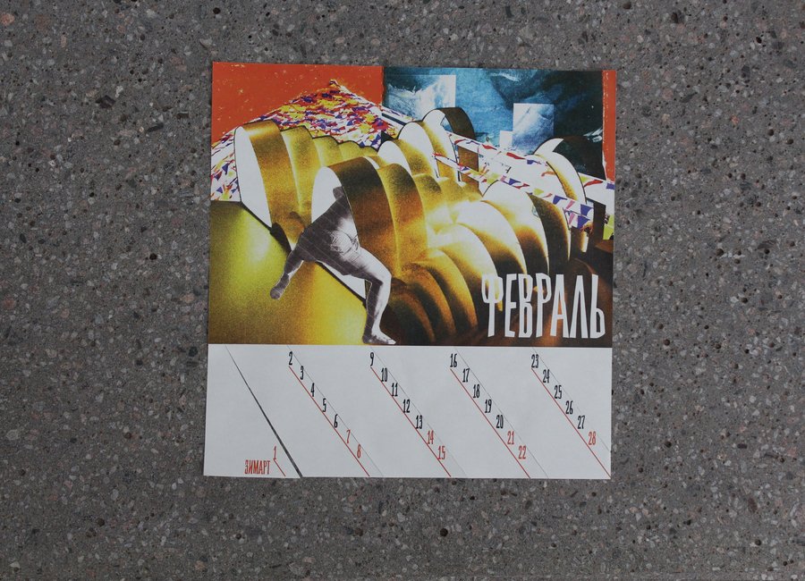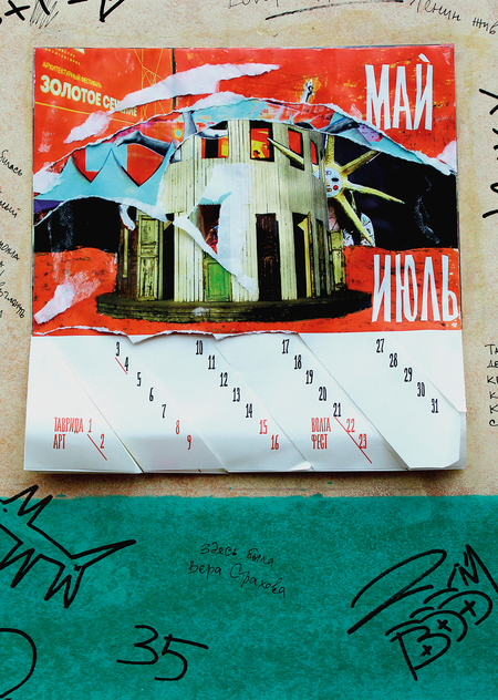 Основной календарь — представляет собой объявления-афиши, которые владелец календаря срывает каждый месяц, обновляя коллаж.