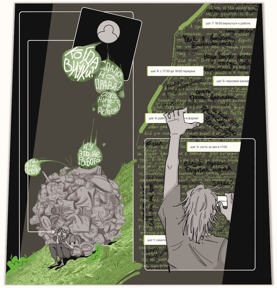 «Бремя лёгких дел» — это автобиографический зин о ежедневной борьбе с апатией и тревогой
